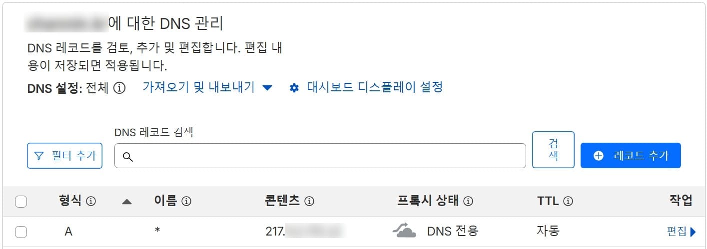 Cloudflare DNS의 레코드 메뉴에서 실제로 IP가 등록된 것을 확인할 수 있다.