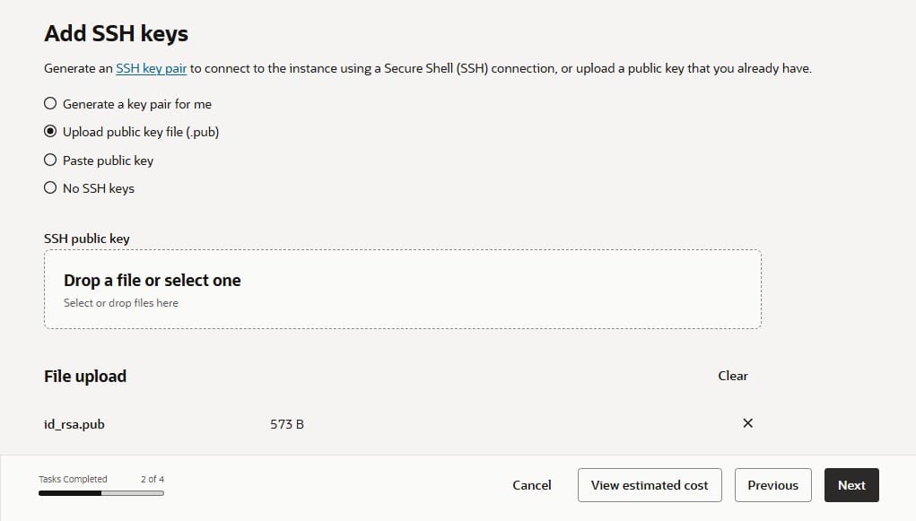 SSH 키가 있다면 public key를 업로드 하여 등록합니다.